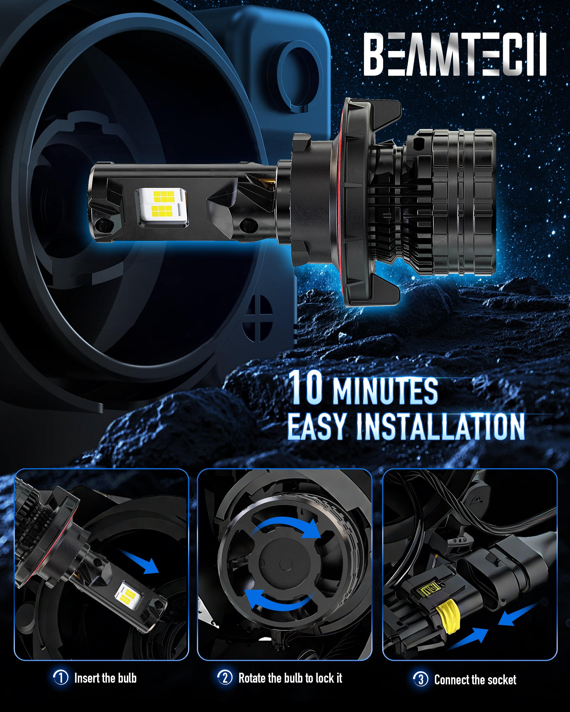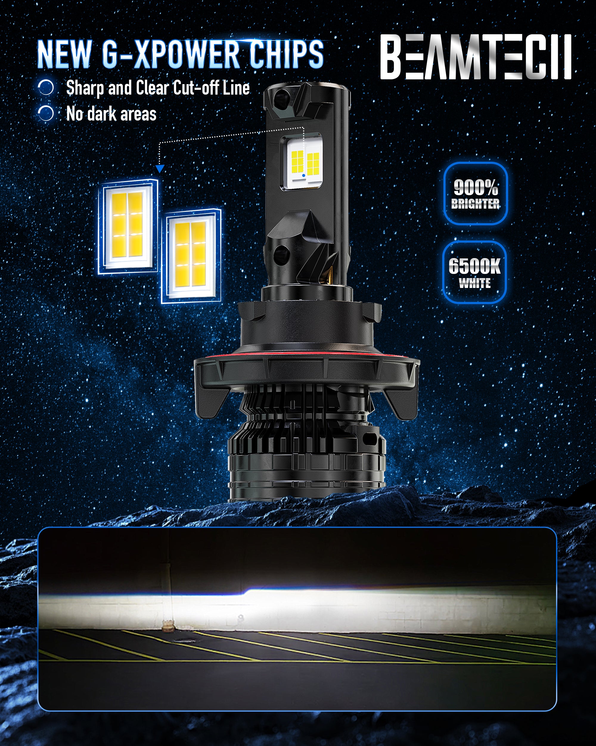 BEAMTECH H13/9008 Bulbs, 900% Brighter Canbus Ready 6500K White Light or Fog Light, 2 Bulbs.