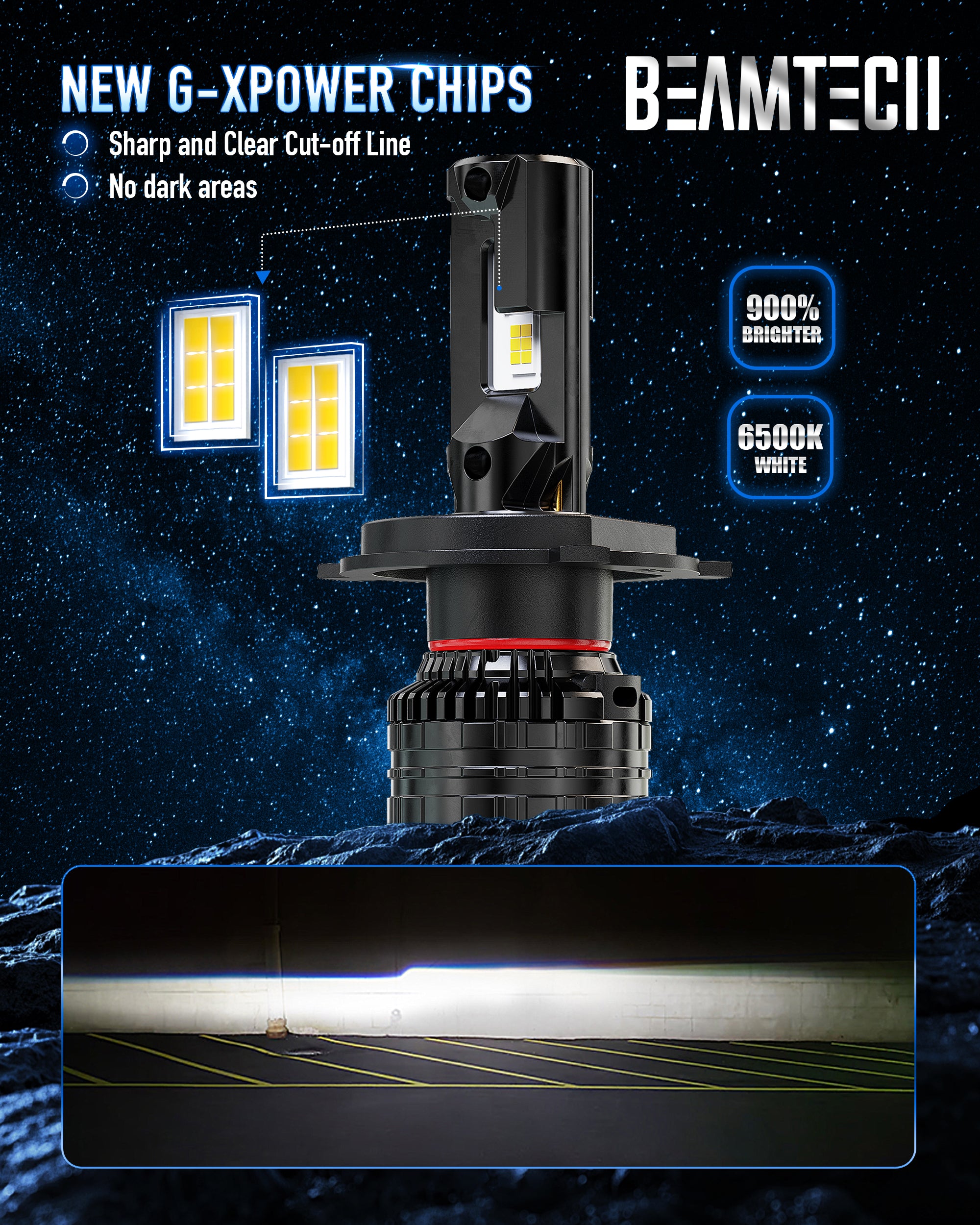 - 900% Brighter: BEAMTECH H4 Bulbs quipped with new G-XPower chip producing brighter light than ordinary bulbs.