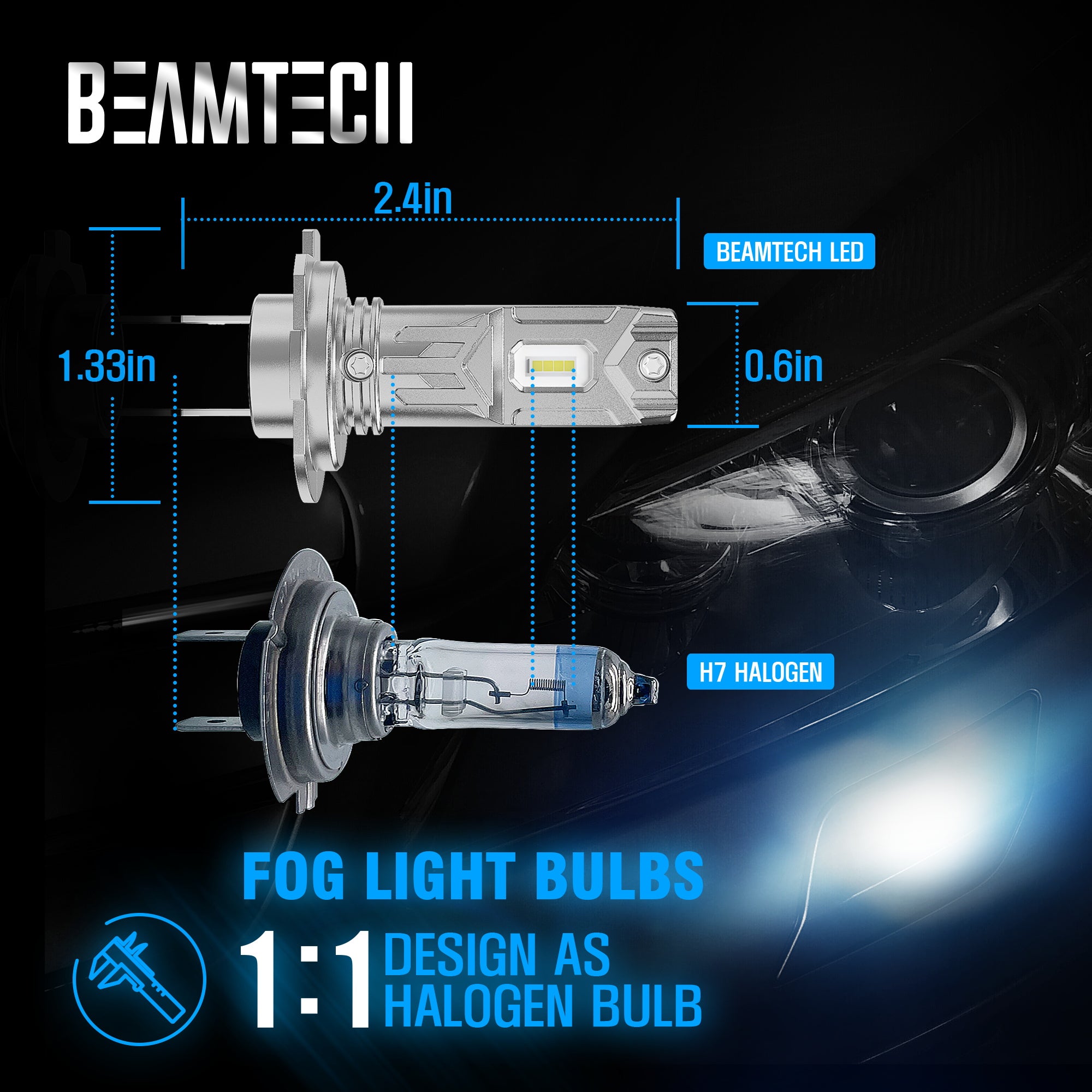 - 【Optimum Beam Pattern】-H7 fog bulb are equipped with 8 CSP chips per pair, 6500K xenon white color,Super focused beam pattern design,allowing you to see clearer and wider driving vision.