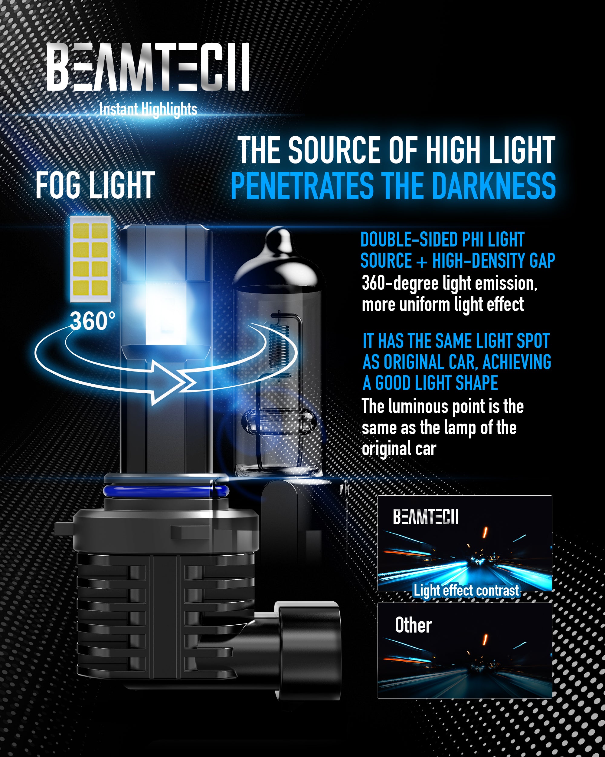 - Wider Visibility: The luminous point of led bulb is the same as the halogen bulb, which replaces the dim bulb and emits white light.