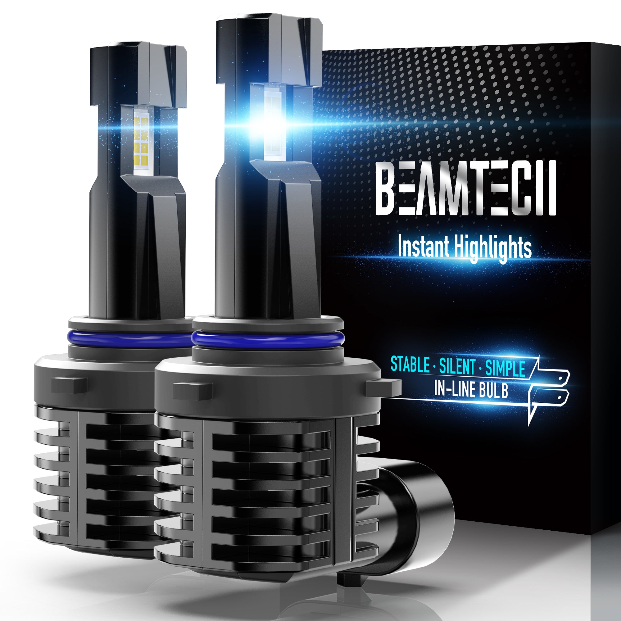 BEAMTECH 9012 LED Headhight Bulb, Fanless In Line HIR2 Halogen Replacement 6500K Xenon White